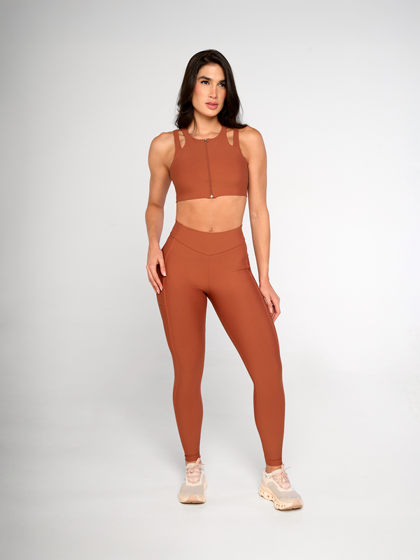 Leggings de talle alto con pretina ajustable y herraje en acero inoxidable. Máxima elongación, suave al tacto y aplique en PVC para un fit cómodo, moderno y resistente.