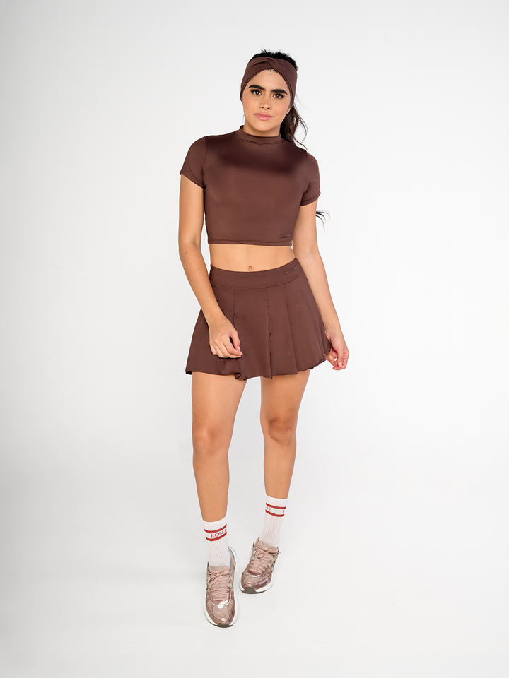 Crop top de manga corta y cuello alto, con silueta semiajustada. Suave al tacto, máxima elongación y aplique PVC para un estilo moderno y versátil.