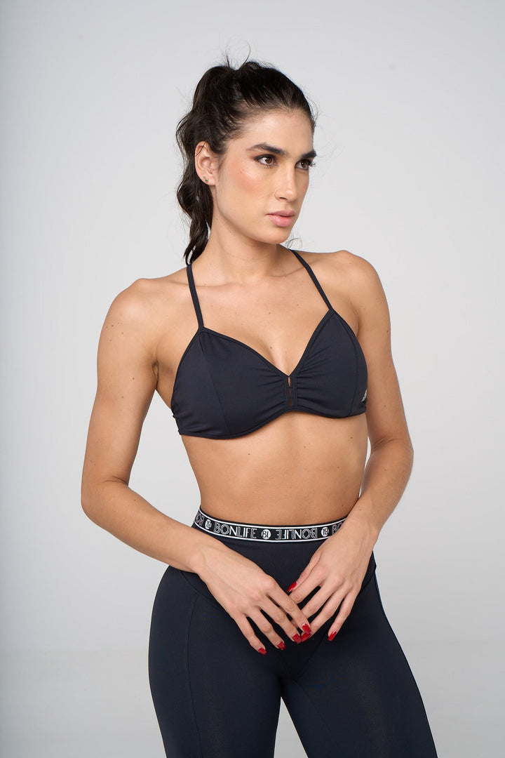Top Emerge con realce pre-hormado y tiras ajustables. Soporte ideal y espalda descubierta para un toque sofisticado. Perfecto para entrenamiento o look sporty-chic. Composición: 80% Poliamida, 20% Elastano.