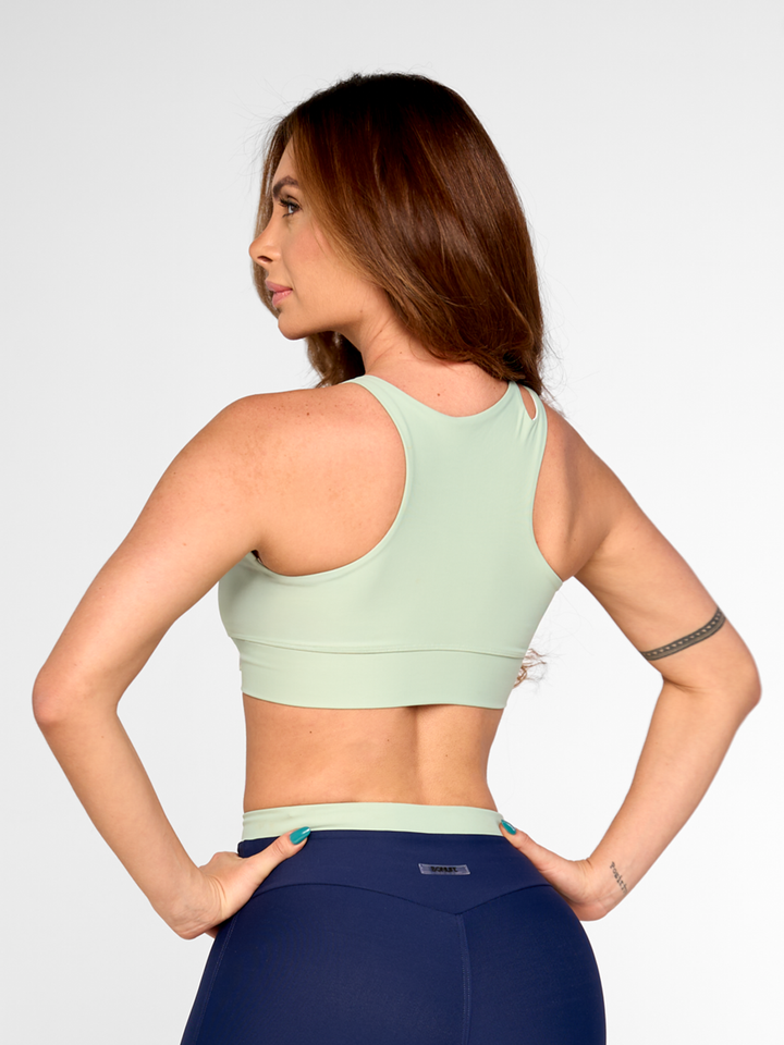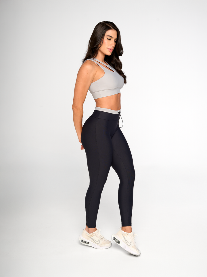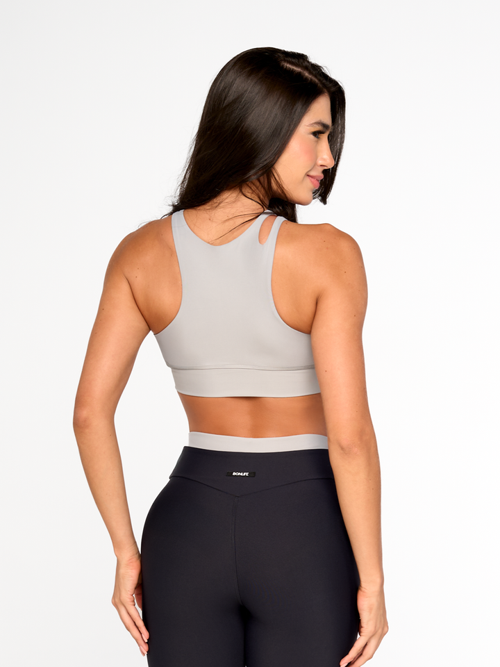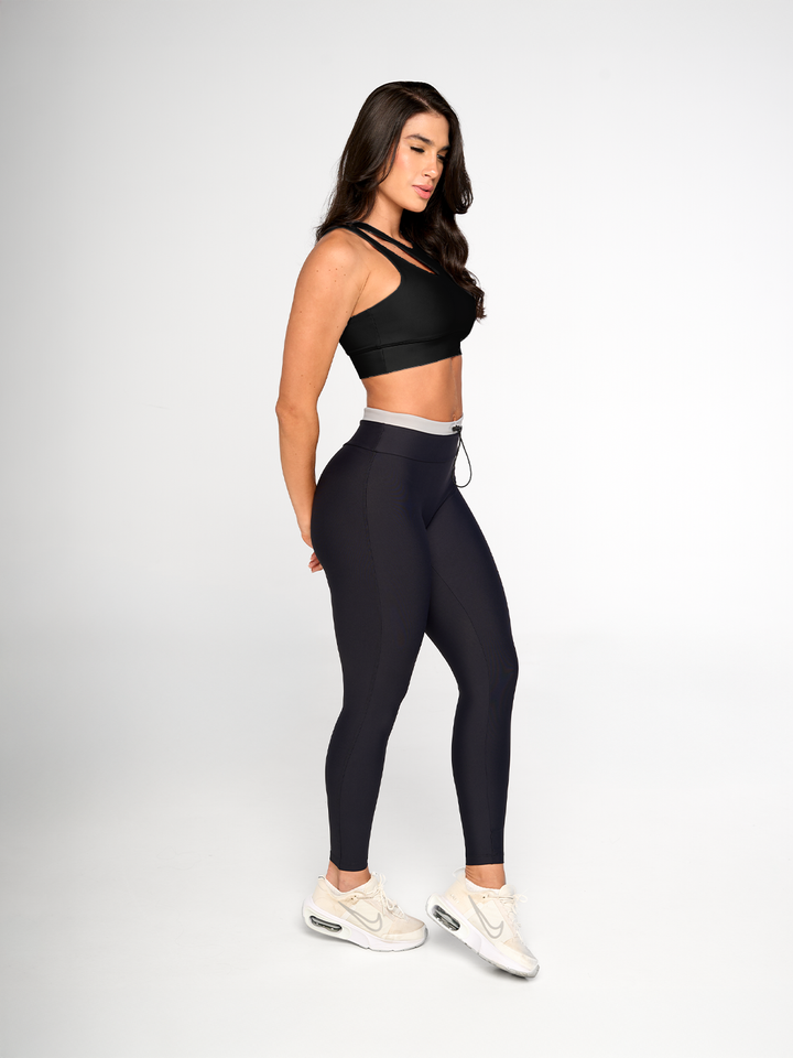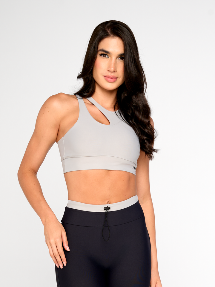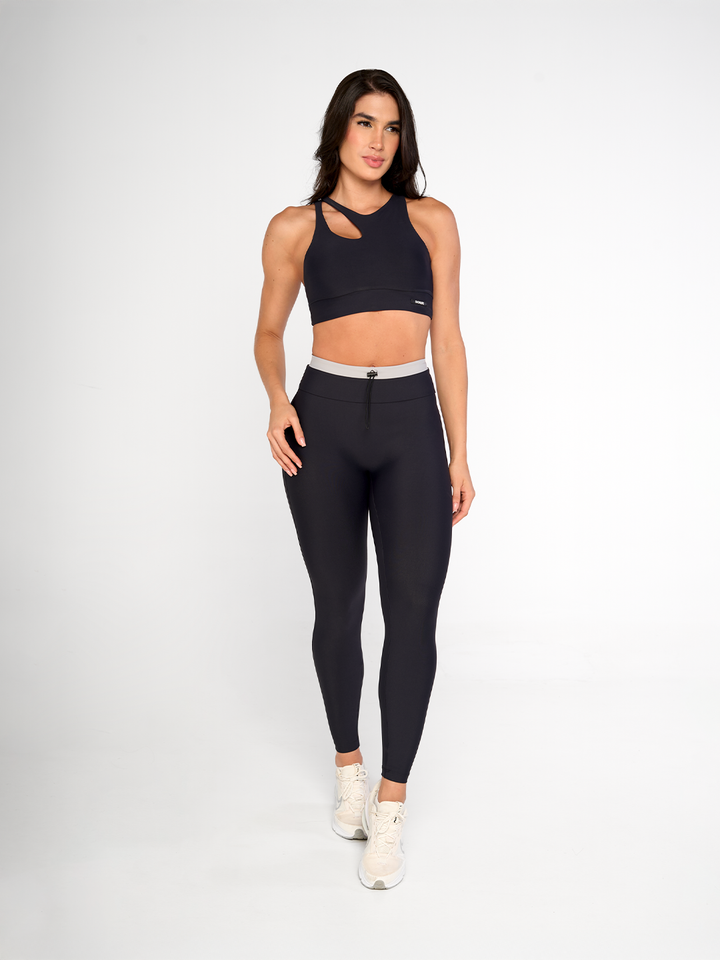 Top de escote redondo con cut off en hombro. Silueta completa, máxima elongación y suave al tacto. Aplique en PVC para un look moderno, cómodo y versátil.