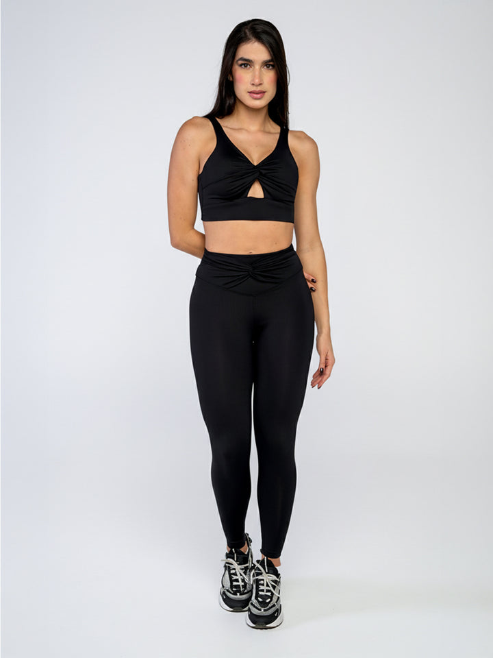 Top con escote en V y nudo frontal. Espalda recta y tejido elástico para mayor confort. Aplique reflectivo moderno. Composición: 80% Poliamida, 20% Elastano.